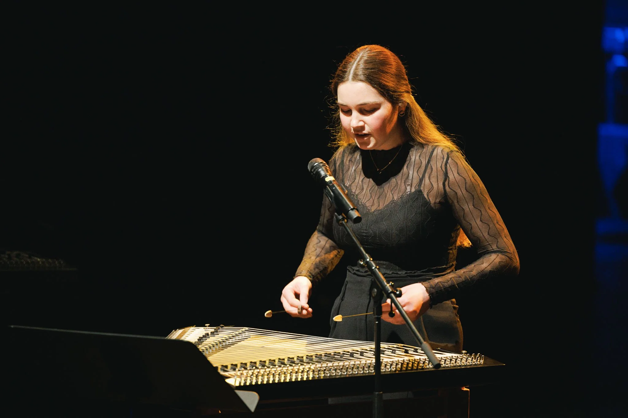 Den Abschluss des zweitägigen Festes bildete das Konzert „Walzer im Paradies“ mit Werken für großes Hackbrettensemble von Franz Léhar/Jean Pütz und Dorothea Hofmann, gespielt von der Hackbrettklasse (Paula Berlinghof, Magdalena Geiger, Marianne Heufelder, Emma Huber, Regina Lederer, Regina Strasser, Johanna Trifellner, Maria Weigl), einer Sonate von Nicolas Chédeville mit Hackbrett, Cembalo und Barockvioloncello und zwei solistischen Beiträgen der Bundespreisträgerinnen Jugend musiziert 2024 Elisabeth Ebel und Emma Huber. Das Ensemble Hackbrettivo (Johanna Trifellner, Maria Weigl, Magdalena Geiger, Xaver Eckert) spielte Musik von Peter Wittrich, Christoph Pfändler und traditionelle Musik aus Bayern, Kolumbien und der Mongolei. Ein Konzerterlebnis mit einem Feuerwerk an begeistertem und mitreißendem Musizieren!